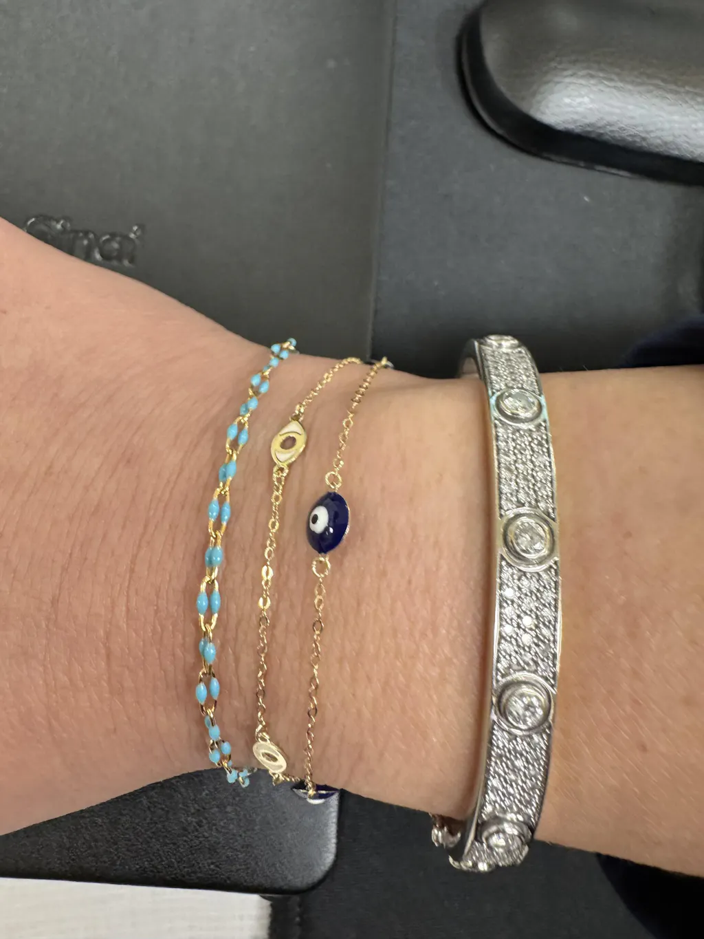 Constructed from top-quality gold filled and durable turquoise enamel material, this gold filled bracelet boasts a lasting shine, making it a long-lasting addition to your collection.