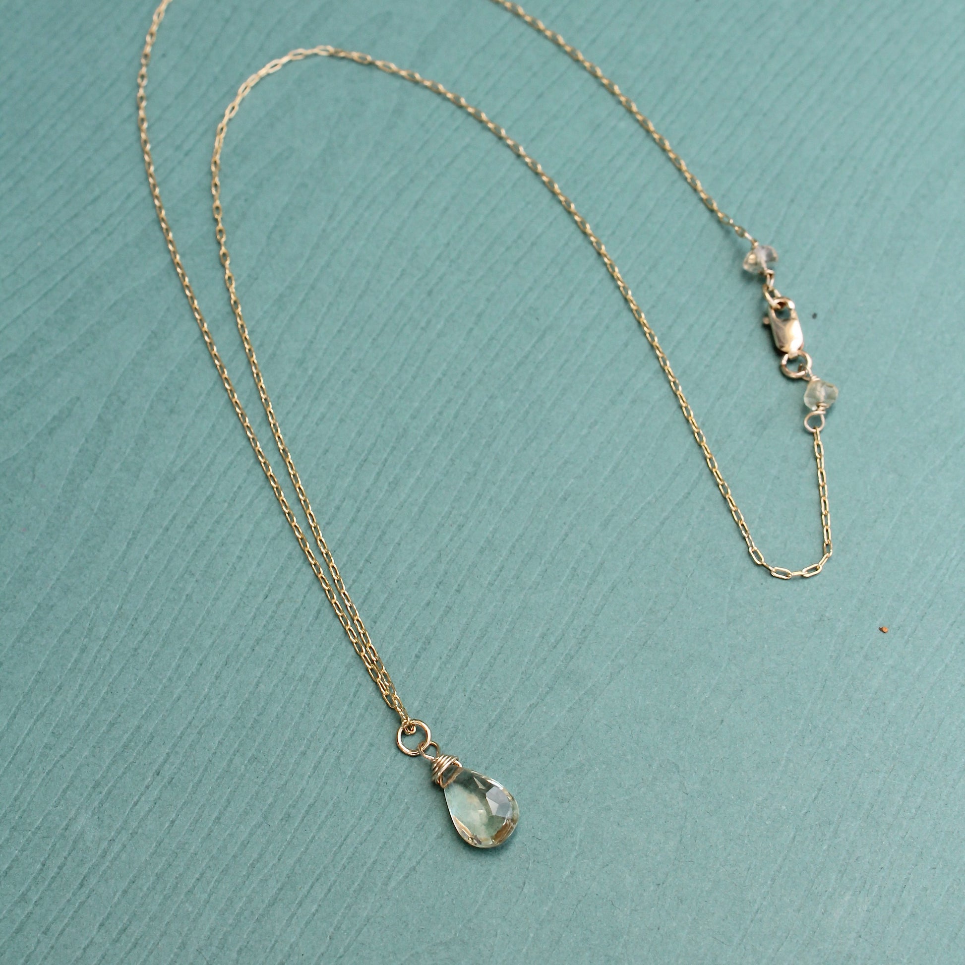 Briolette de Cuarzo Limón en Cadena Fina