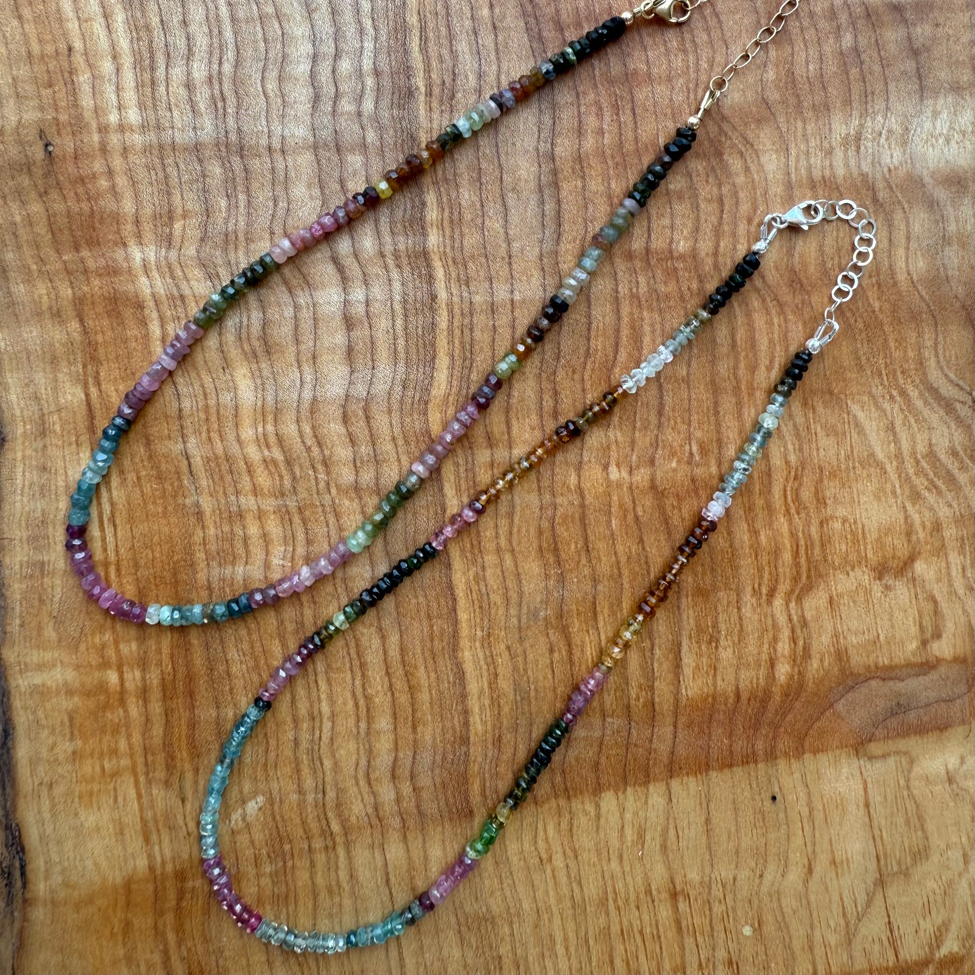 ¡Algunos días solo necesitas un poco de color! La turmalina es la solución perfecta para agregar un arcoíris de tonos tierra. Dos collares diferentes para tu elección: