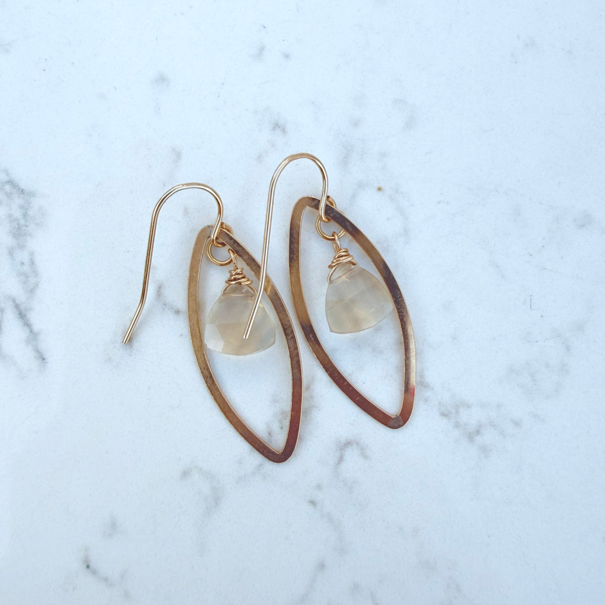 Discover the allure of nature's artistry with this stunning gemstone creation. Each piece features a brilliantly faceted fluorite trillion cradled within an elegant gold marquise setting, delivering a sophisticated touch to any ensemble. Available in captivating blue or yellow hues, this 1.5" drop earring combines the timeless appeal of gold-filled metalwork with the mesmerizing beauty of natural stone. The organic character of fluorite means every pair is wonderfully unique, with subtle variations in color depth and natural striations that make your earrings truly one-of-a-kind. Elevate your jewelry collection with a piece that celebrates the raw elegance of gemstones.